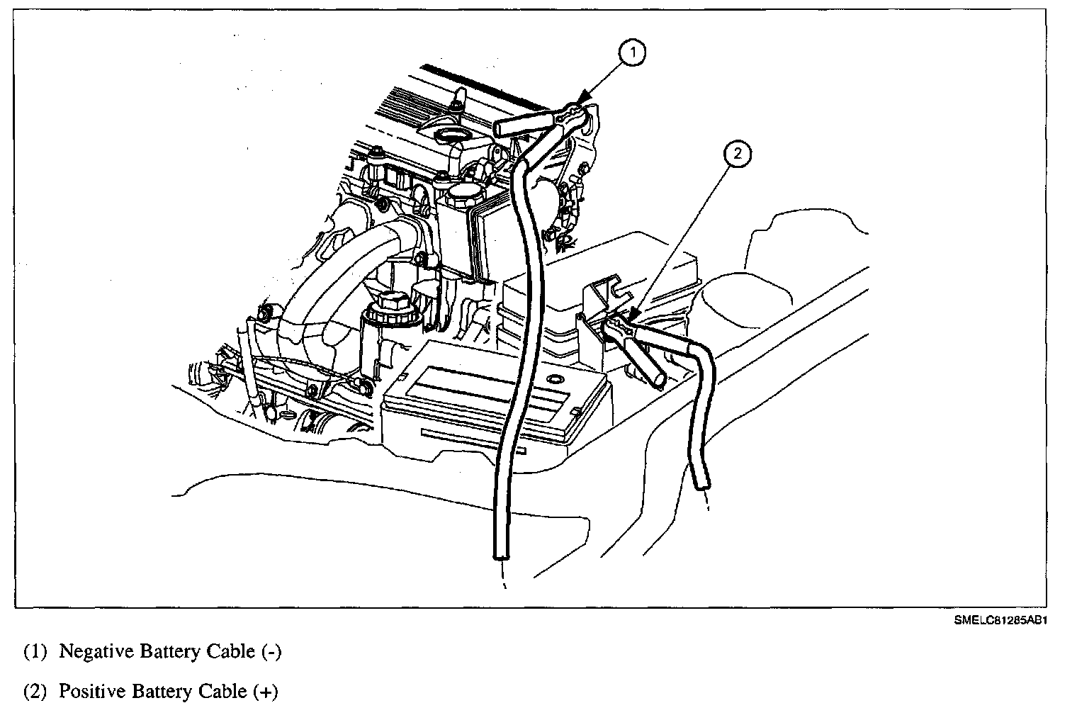 CAUTION: ALWAYS REMOVE THE NEGATIVE JUMPER CABLE FROM THE ENGINE LIFT HOOK FIRST TO AVOID SPARKS NEAR THE BATTERY. SPARKS COULD EXPLODE THE BATTERY CAUSING SERIOUS PERSONAL INJURY.