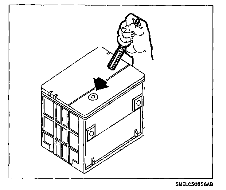 ^ Do not charge the battery if the hydrometer is clear or yellow tap the hydrometer lightly to dislodge any gas bubbles. If the indicator is still clear or yellow, replace the battery.