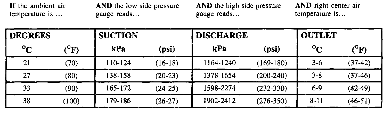 ^ This condition could generate an intermittent cooling complaint along with reduced air flow because of evaporator freeze up at lower ambient air temperatures.