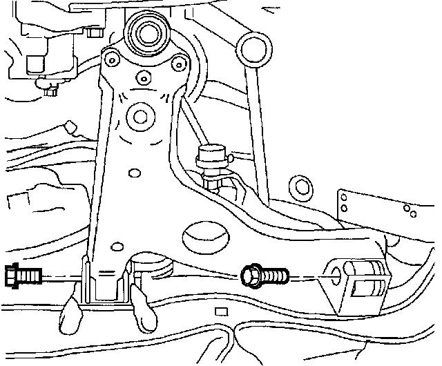 3. Using Torque Angle Gauge SA9140E (or equivalent), install control arms to frame assembly using new bolts.