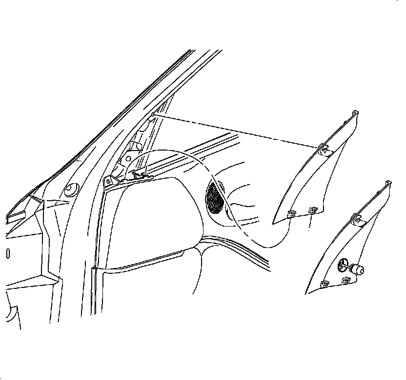 9. Install mirror trim cover by placing lower portion of cover behind trim panel and push in on top fastener.