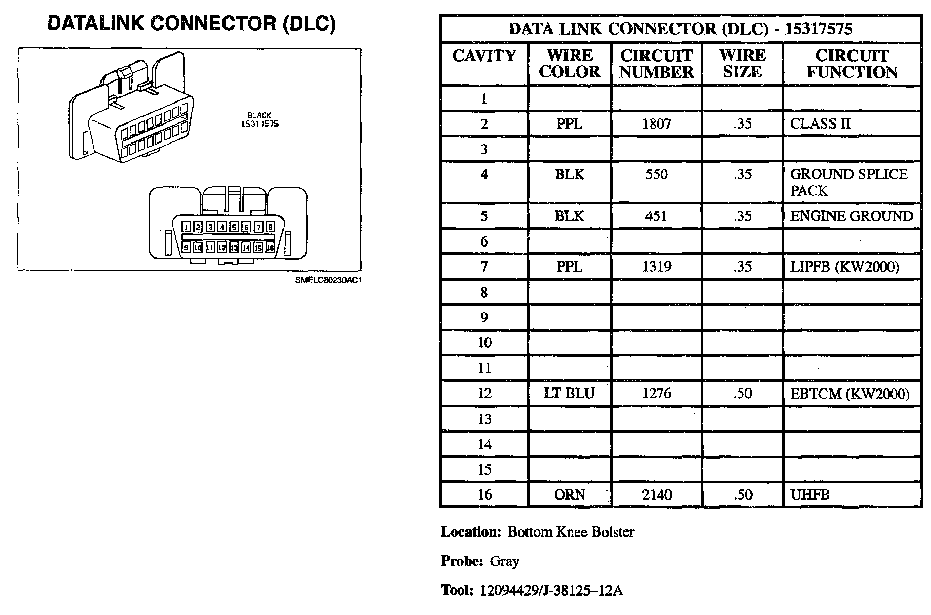 Data Link Connector: Diagrams