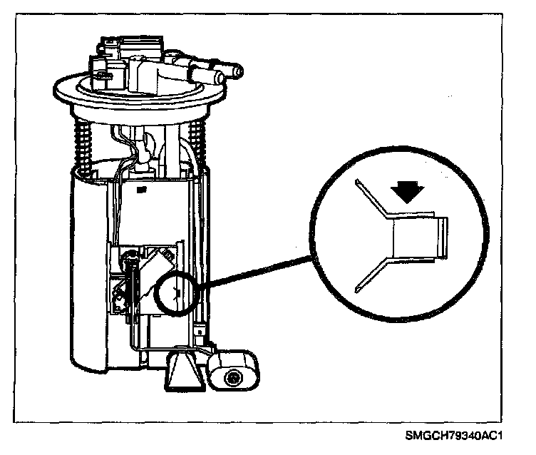 IMPORTANT: Verify that float arm on sender unit maintains correct relationship to pump module by standing module on a flat, horizontal surface. The float should lay on the surface.