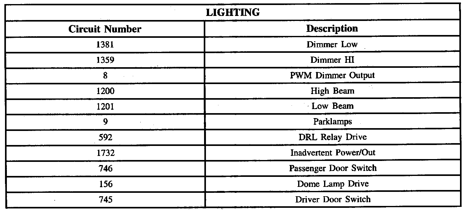 Lighting Circuit Chart