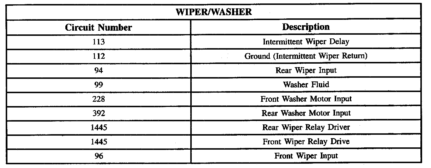 Wiper/Washer Circuit Chart