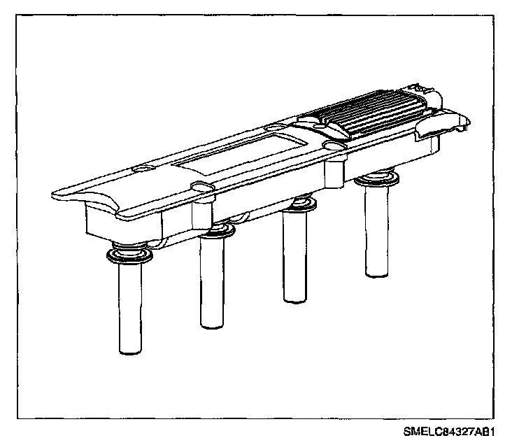 The EI module, ignition coil housing with coil packs and spark plug boots are bolted as an assembly to the top of the cam cover. The Electronic Ignition (EI) module charges and discharges the coils based on PCM control. The PCM uses a high control signal of near 5 volts to charge up the coil and a low control signal of near 0 volts to discharge the coil. If the coil is charged and the control signal is low, the coil will fire through its secondary towers. The PCM controls spark timing and dwell (spark On-time) under all engine running conditions.