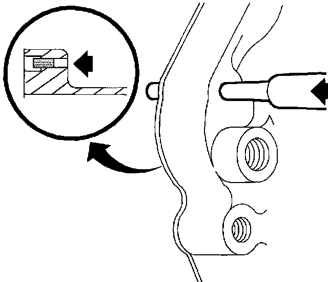 4. Remove transaxle vent filter from case using a punch. Drive vent from outside to inside.
