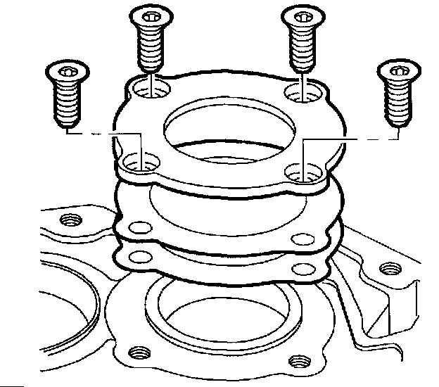 3. Install input shaft bearing retainer using 1.5 mm of shims, and tighten screws evenly in a crisscross pattern.