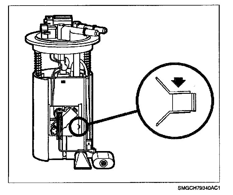 IMPORTANT: The fuel pump assembly is only serviced as a module without the sender unit. The inlet filter can be cleaned with mineral spirits; however, it cannot be replaced.