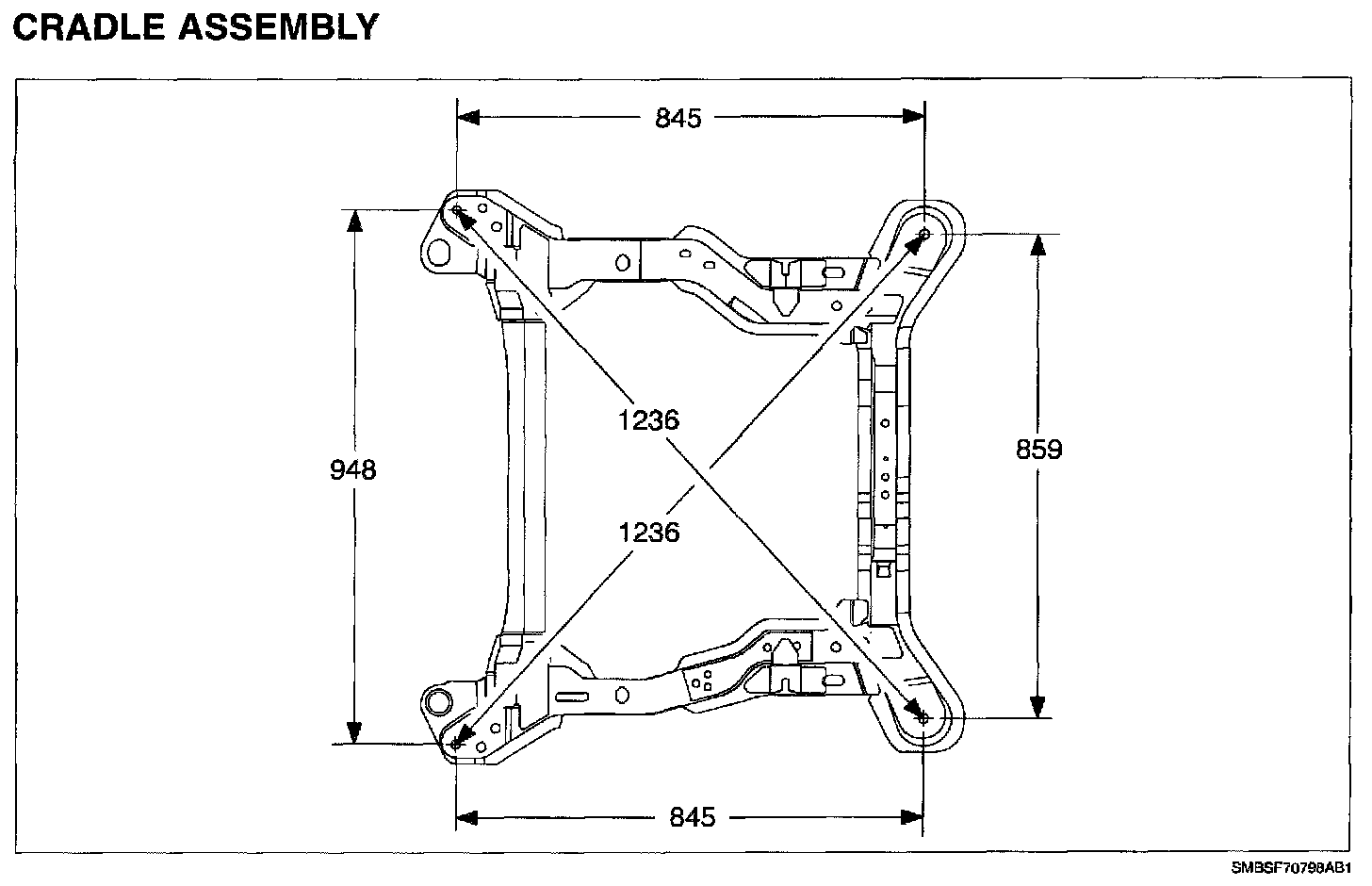 CRADLE ASSEMBLYNOTE: Repair of cradle could result in damage to the vehicle, degrade the performance and/or safety of the vehicle after repair.