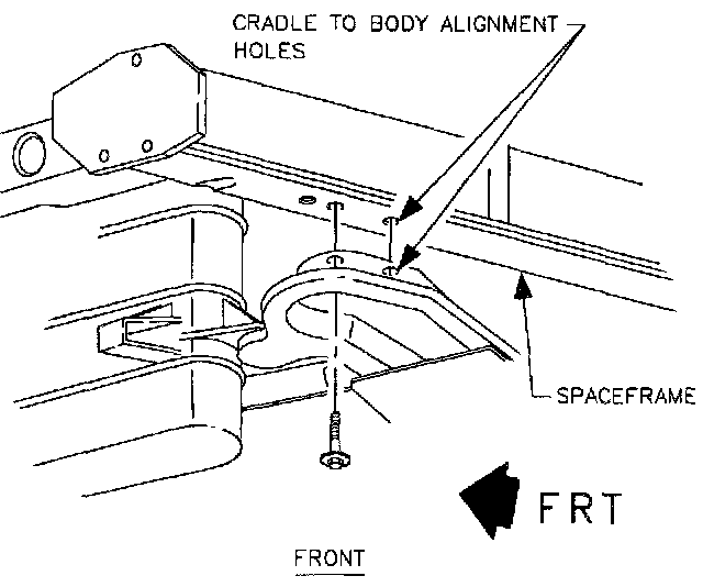 4. Position frame to body at the two front frame alignment holes using a 9/16 inch rod and install fasteners.