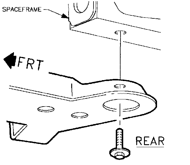 18. Tighten transaxle strut frame bracket-to-frame nut.