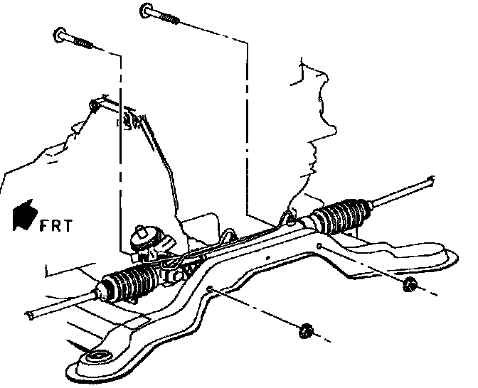 21. Install steering gear-to-frame attachment bolts and new nuts (power steering gear shown, manual steering gear similar).