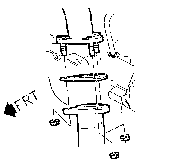 26. Install front exhaust pipe-to-exhaust manifold fasteners and tighten.