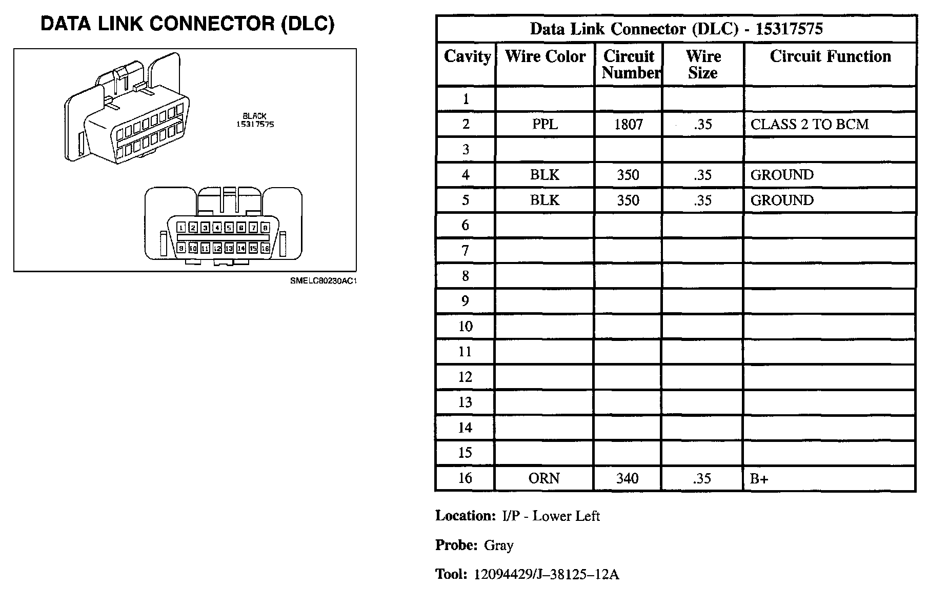 Data Link Connector: Diagrams