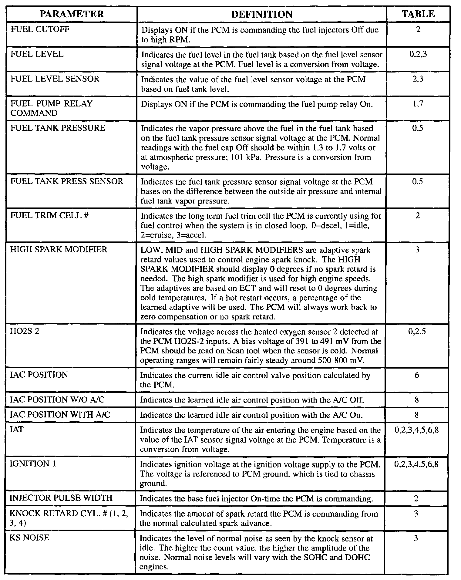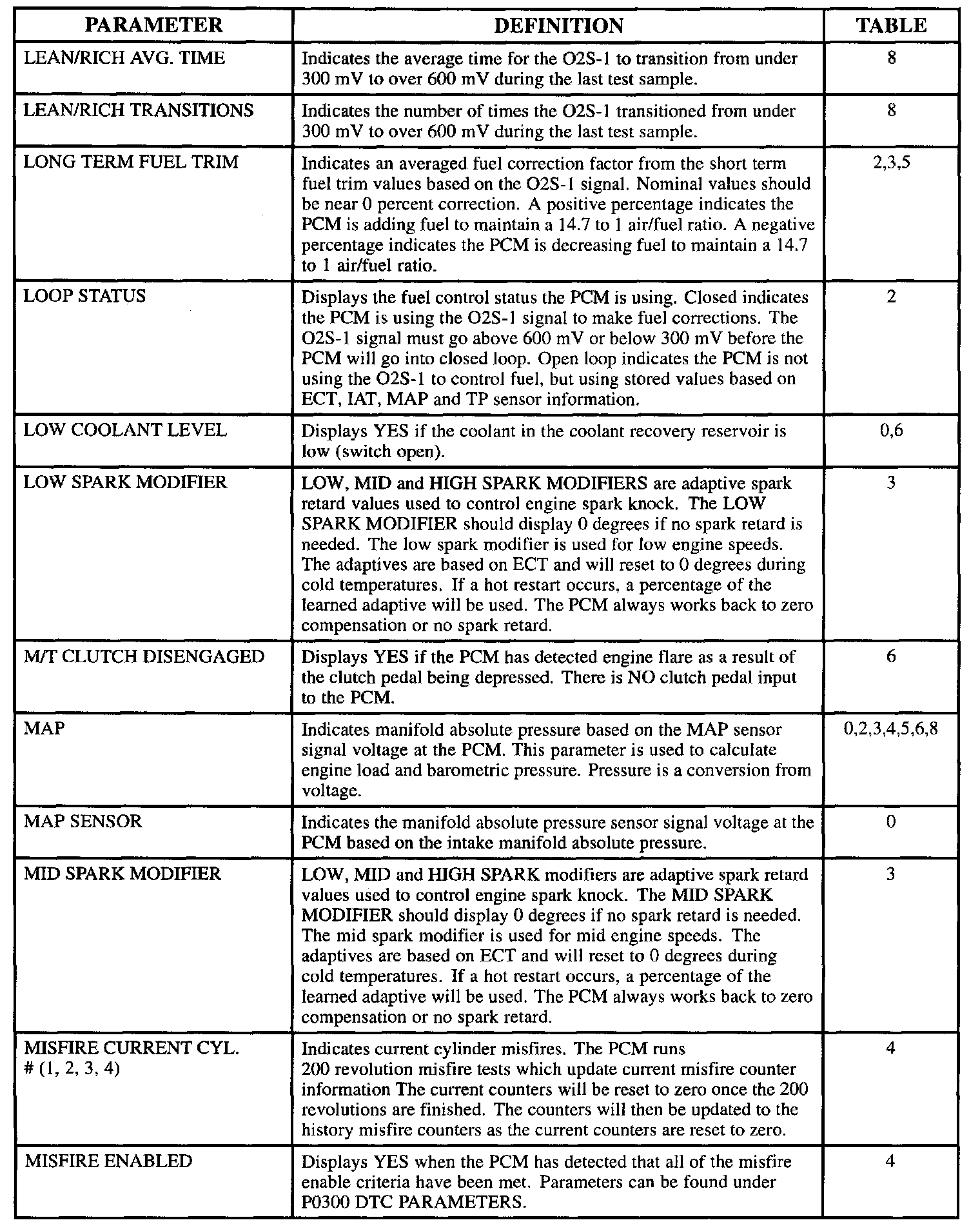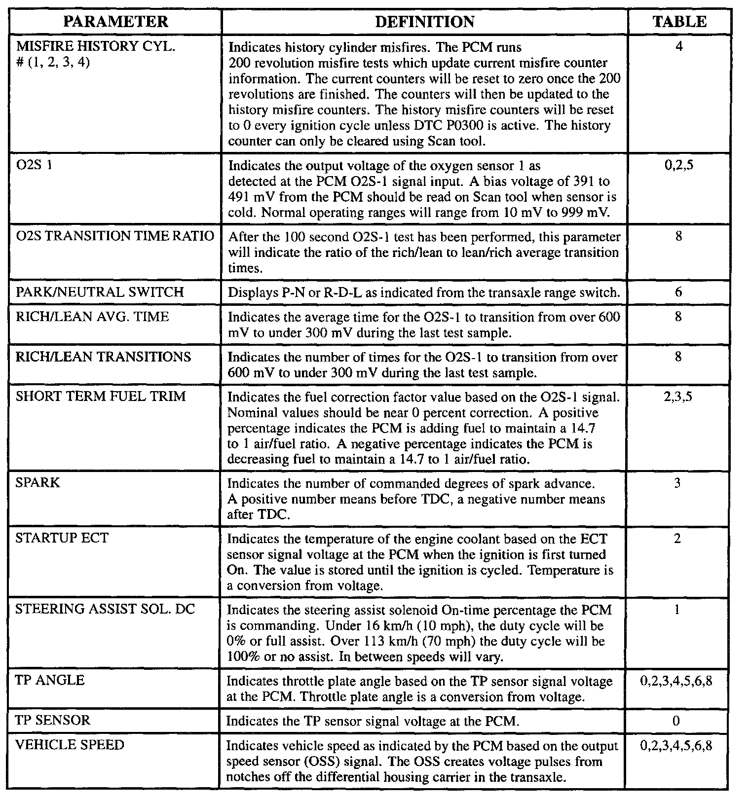 Scan Tool Data, Normal Values and Definitions