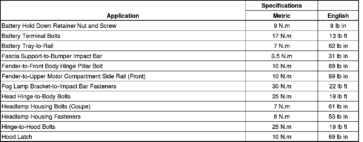 Fastener Tightening Specifications