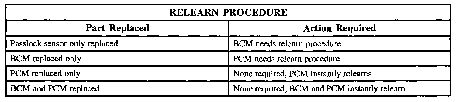 IMPORTANT: If no components are replaced, the 30 minute autolearn can always be used.^ This method is usable if the Passlock sensor was the ONLY required system part change. BCM or PCM replacement requires use of Sand K Method.