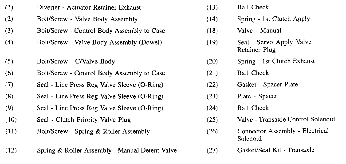CONTROL VALVE ASSEMBLY COMPONENTS