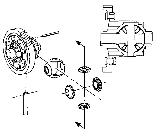 6. Rotate the pinions and thrust liner into the housing together until they line up with the pinion shaft bore in the housing. Check that side gears are in proper location.