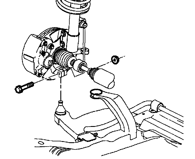 6. Install lower control arm ball stud into steering knuckle. Hold the bolt stationary while turning the nut.