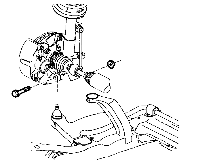 20. Remove the lower ball stud bolt and separate the ball stud from the steering knuckle assembly.