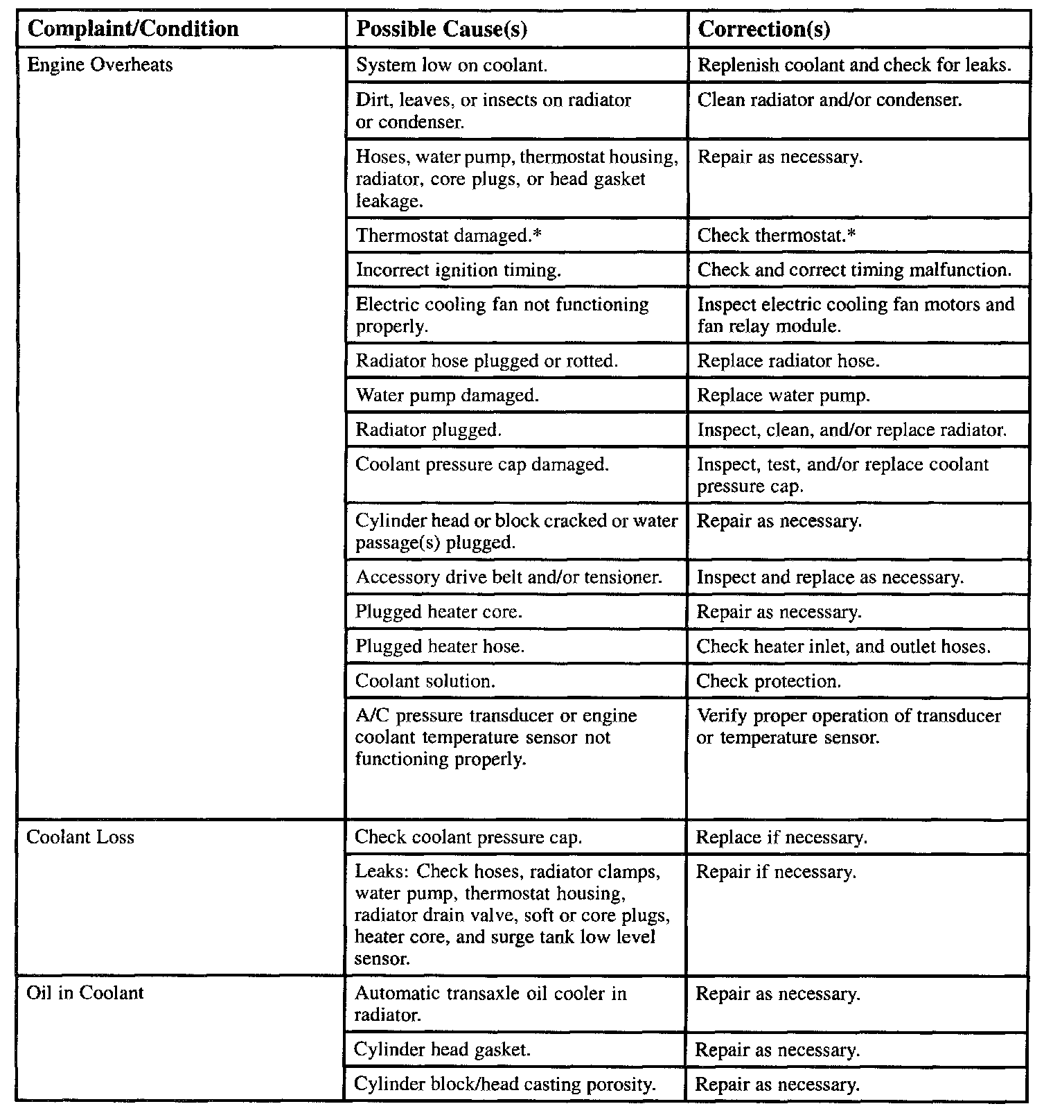 COOLING SYSTEM TROUBLESHOOTING CHART