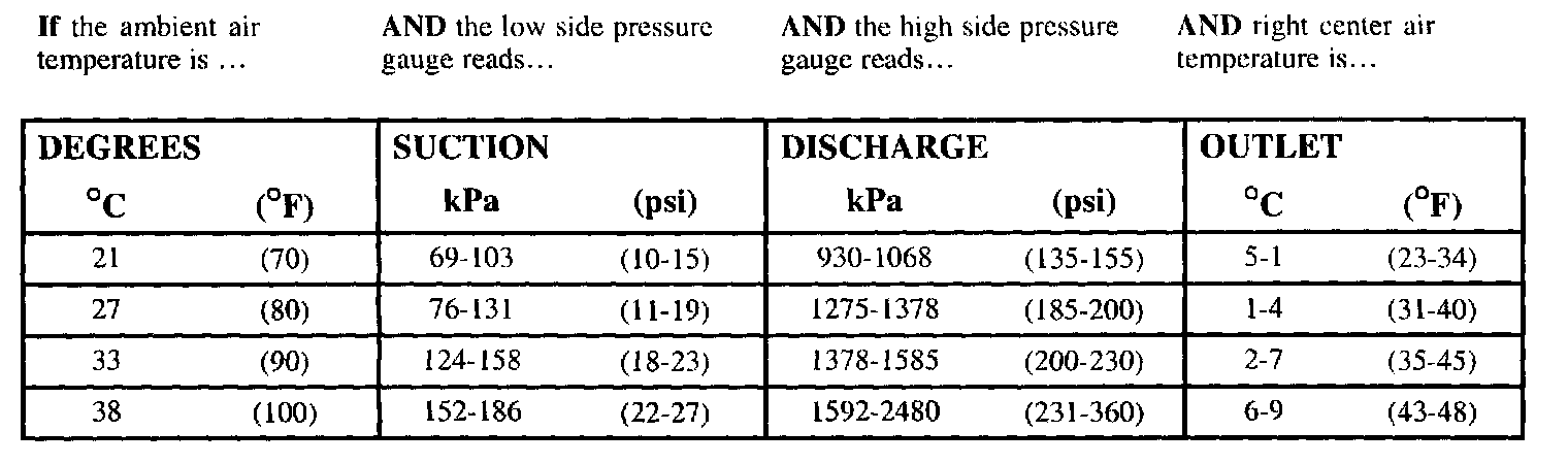 ^ This condition could generate an intermittent cooling complaint along with reduced air flow because of evaporator freeze up at lower ambient air temperatures.