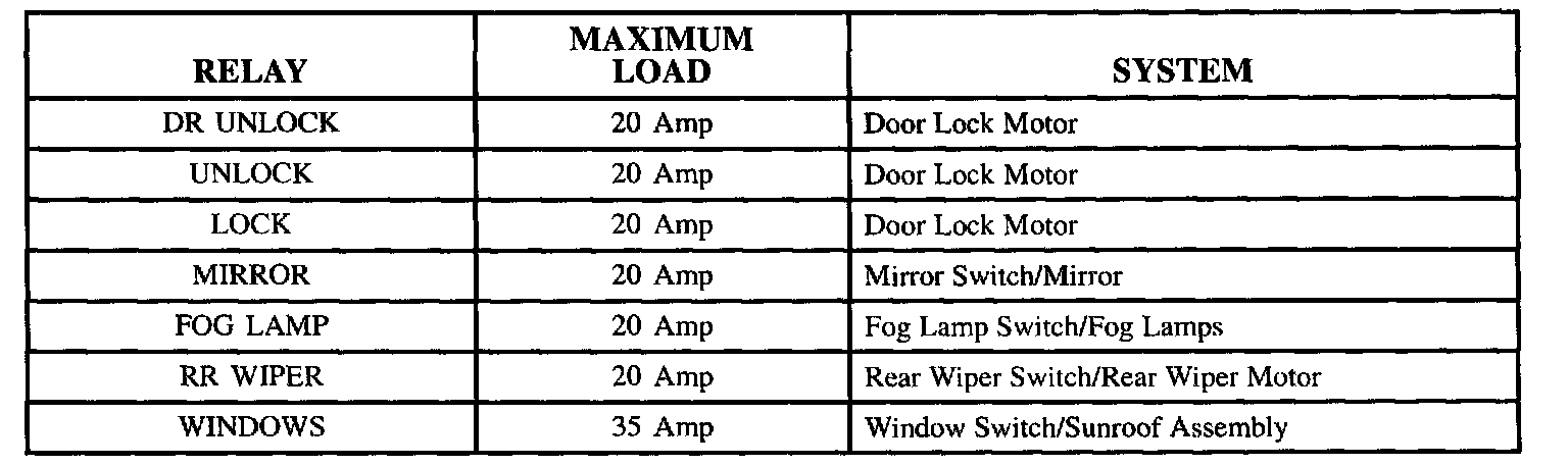 Right Instrument Instrument Panel Fuse Block Charts
