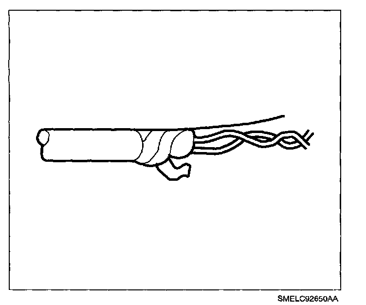2. Unwrap the tape. Do not remove the tape. Use the tape in order to rewrap the twisted conductors after the splice is made.
