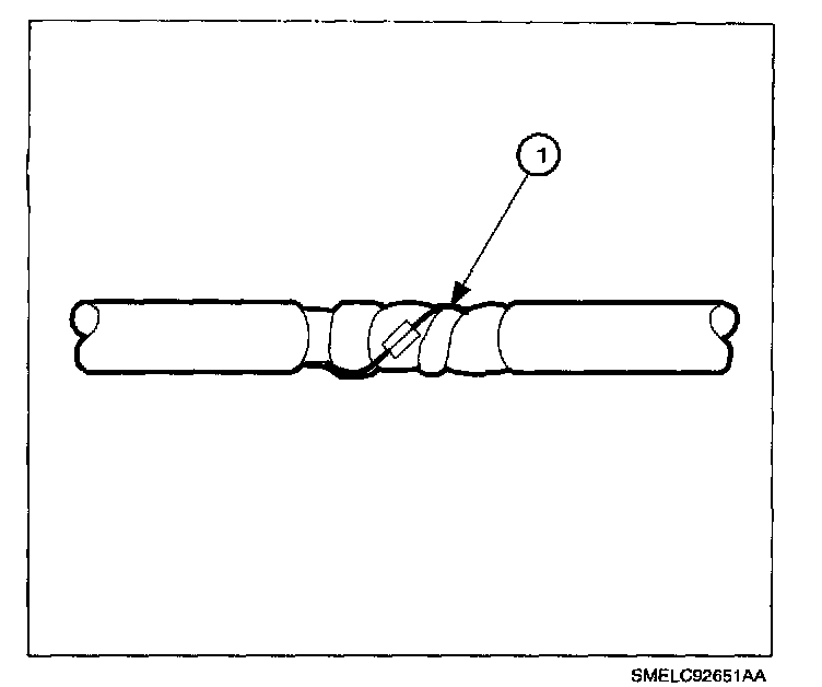 1. Remove the outer jacket (1). Use care not to cut into the drain wire of the mylar tape.