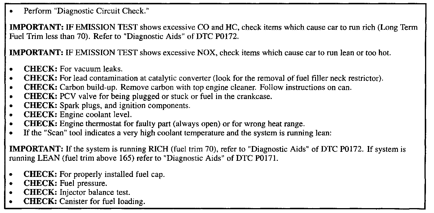 ^ If emissions test indicates excessive NOX, check for items which cause vehicle to run lean or too hot, refer to diagnostic chart and emission symptom chart.