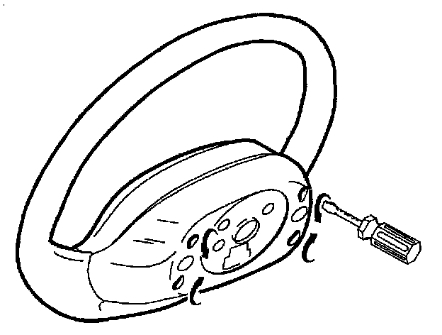 3. Remove inflator module by inserting a stubby flat blade screwdriver into the triangle shaped hole in rear steering wheel shroud.