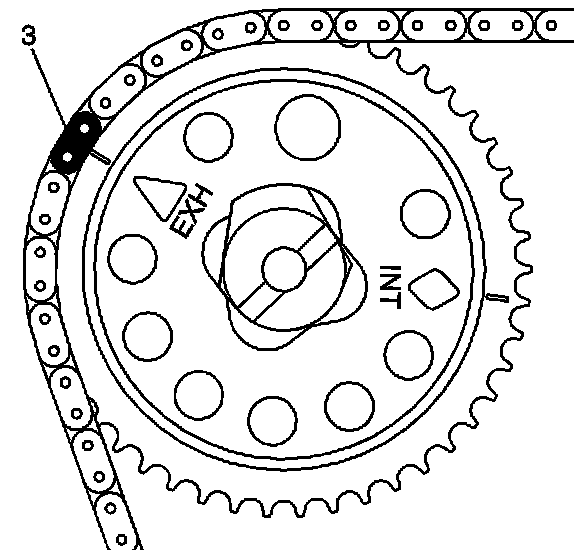 8. Ensure that the EXH triangle on the exhaust camshaft sprocket is aligned with the matching colored link (3).
