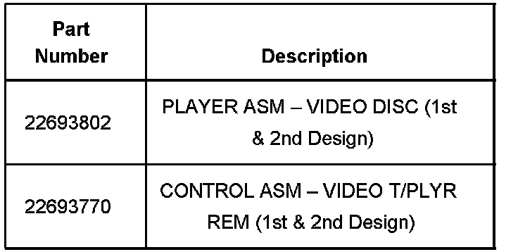 2002 model year vehicles with Rear Seat Entertainment utilize 1st design AVI module and 1st or 2nd design DVD Player and Remote control. 2003 model year vehicles with Rear Seat Entertainment without OnStar(R) utilize 1st design AVI Module and 2nd design DVD Player and Remote control. 2003 model year vehicles with Rear Seat Entertainment and OnStar(R) utilize 2nd design parts throughout.