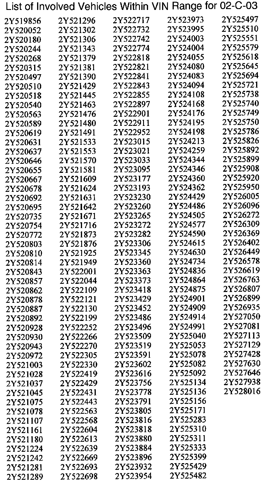 Those Retailers not involved initially in this campaign will receive a message at the top of a blank Facility VIN Listing that states: NO VEHICLES ASSIGNED AT THIS TIME FOR CAMPAIGN 02-C-03.