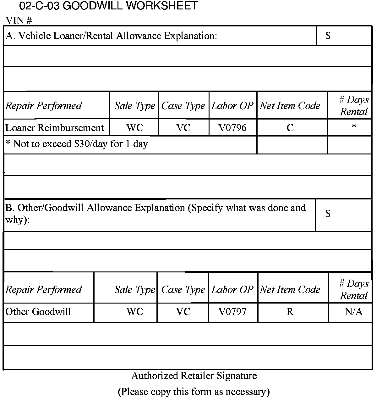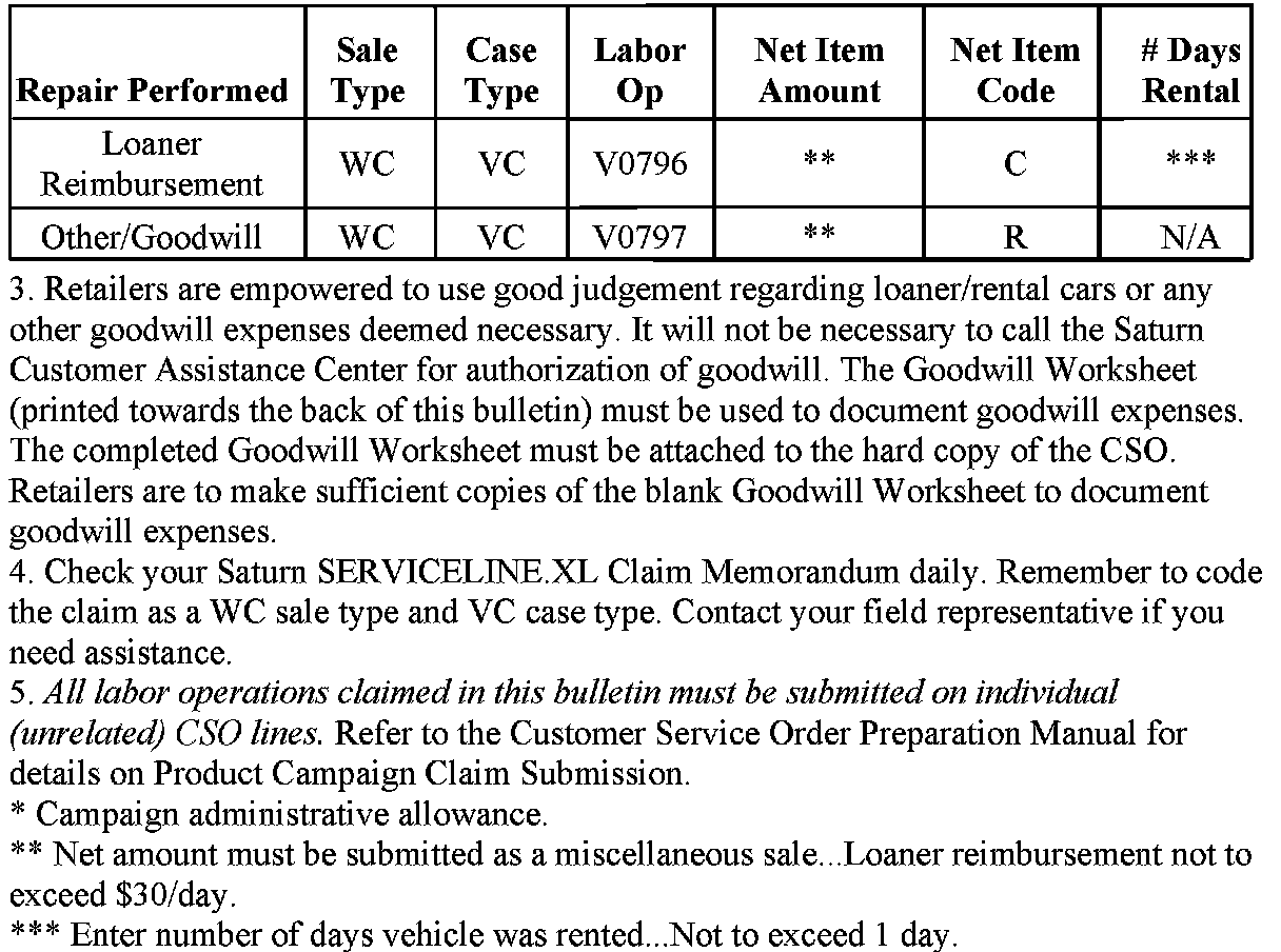 Complete this worksheet and attach it to the hard copy of the Customer Service Order (CSO) to document all campaign goodwill claims submitted to Saturn.