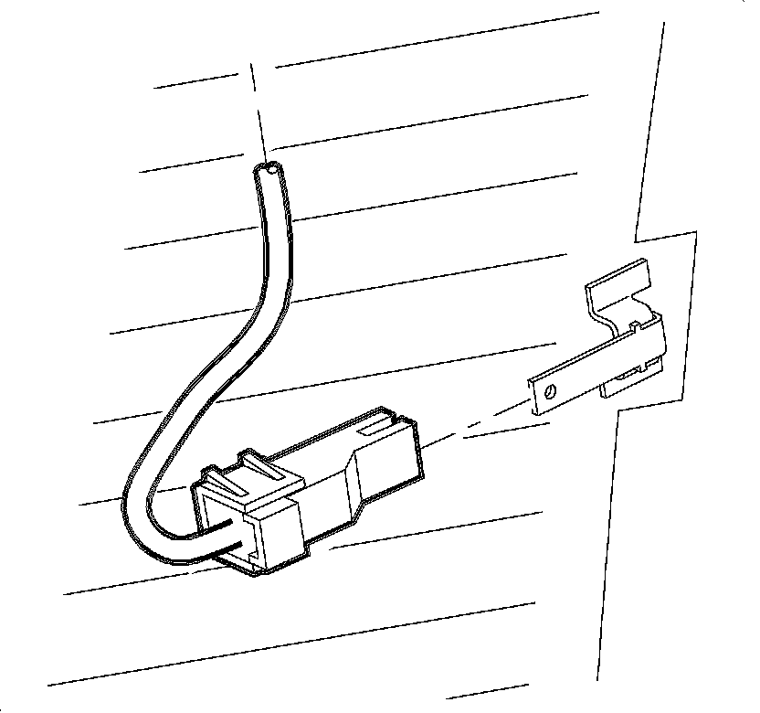 4. Remove the electrical connectors from the rear window defogger bus bars. Mark both the inside and outside of the glass with tape to identify the electrical connector locations. Position the electrical connectors so not to damage the wiring/connectors when using the urethane power removal tool.