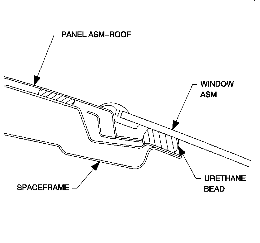 Notice: Until the new urethane has cured, air pressure from a closing door may cause the glass to move. To prevent this, lower the opposite side door window a minimum of 76 mm (3 in) before closing the door.
