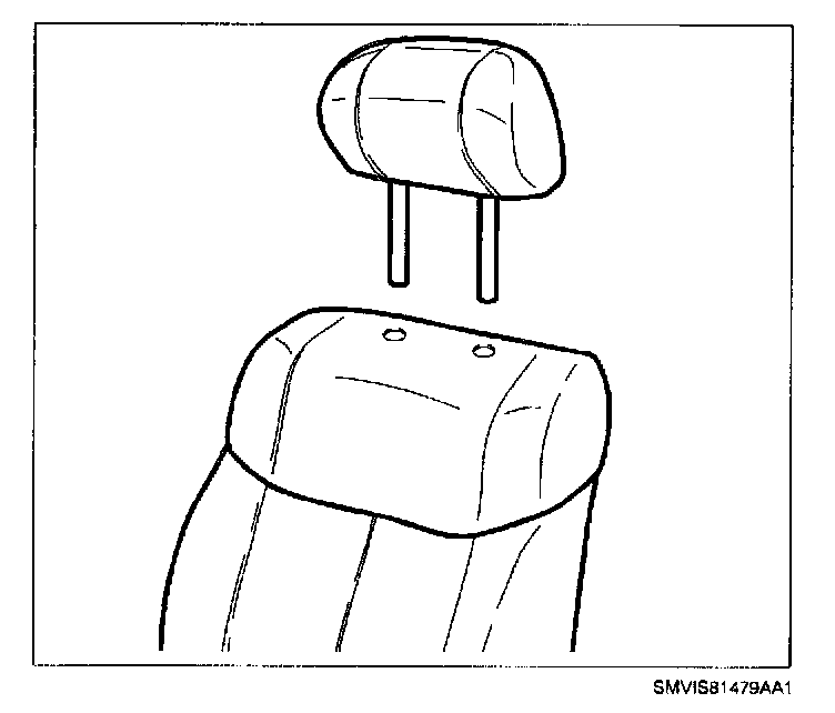 2. Pull upward on headrest while pushing headrest button towards rear of vehicle and pull headrest out of seatback.