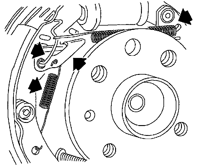 IMPORTANT: When replacing rear brake shoes, inspect backing plate for excessive wear at six raised shoe contact pads. Excessive wear at raised shoe contact pads, such as notches or deep grooves, could impede shoe travel.