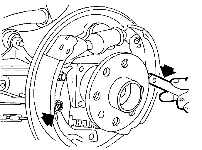 5.1 Insert a screwdriver in access hole and push park brake lever toward outside of drum to release shoes from adjuster.