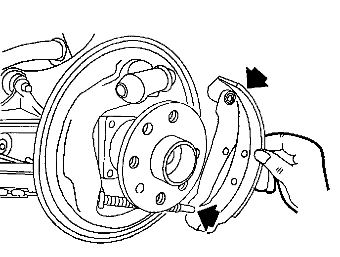 11. Remove leading (front) brake shoe and trailing (rear) brake shoe from park brake cable.