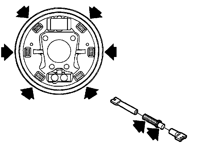 NOTICE: Check that adjuster notches properly engage in brake shoe notches.