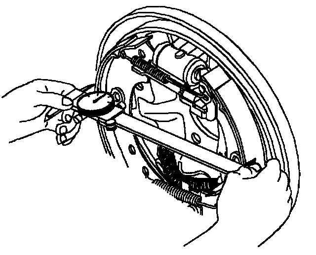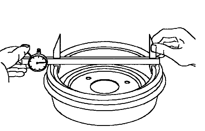 8. Using a 165 - 368 mm (6.5 - 14.5 inch) caliper such as Brake Shoe Setting Gauge J21177-A (or equivalent), measure inside diameter of brake drum.