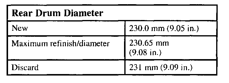 Brake Drum Retaining Fastener: 4 Nm (35 inch lbs.)