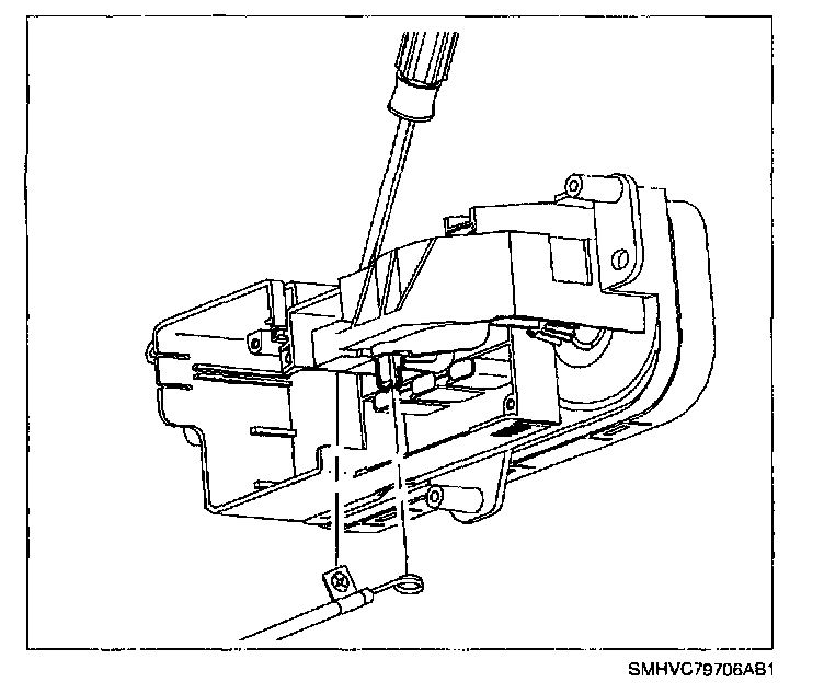2. Install cable eyelet onto control head pin and install cable housing flag into slot in control bead until it engages locking tab.
