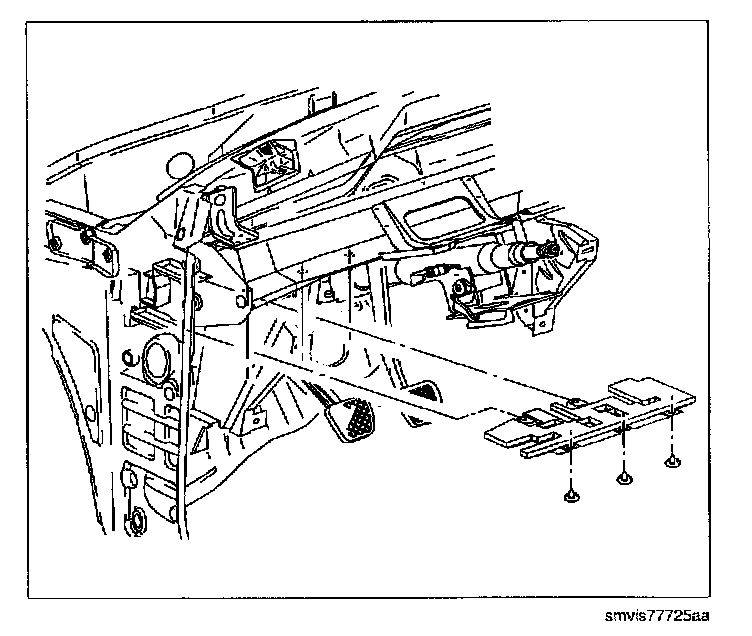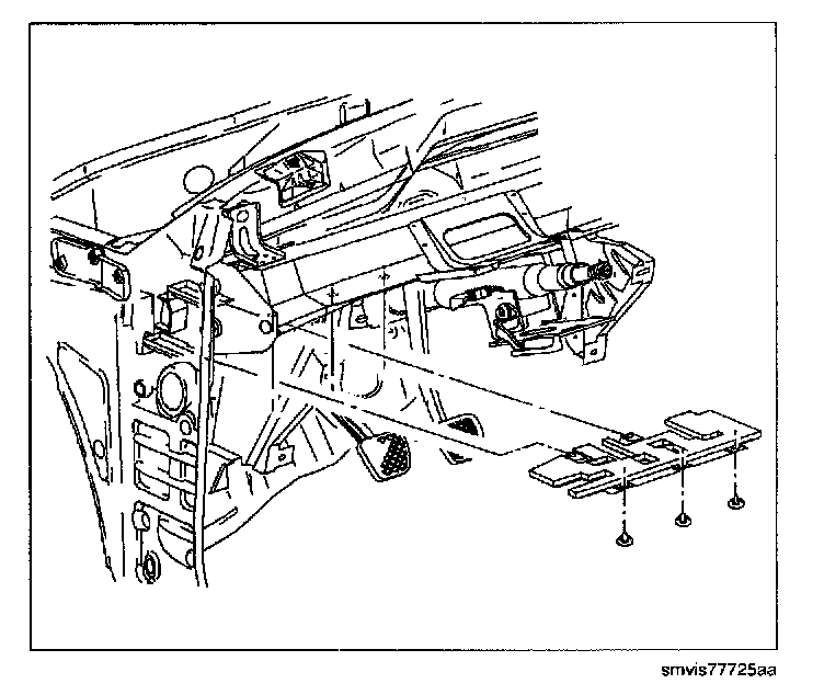 3. Position pedal assembly in vehicle and install lower pedal to front of dash attachment nuts.
