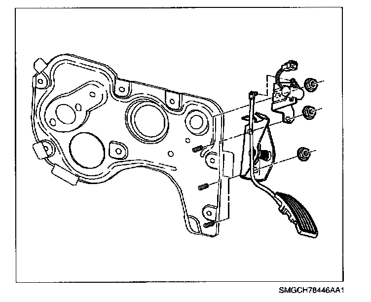 4. Remove remaining accelerator pedal bracket-to-front of dash attachment nuts.