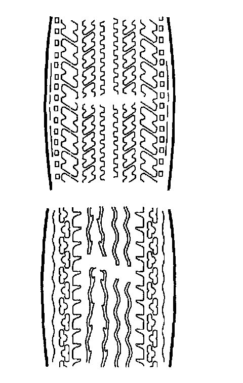 ^ Tread blocks have scuffed, feathered or cupped appearance.